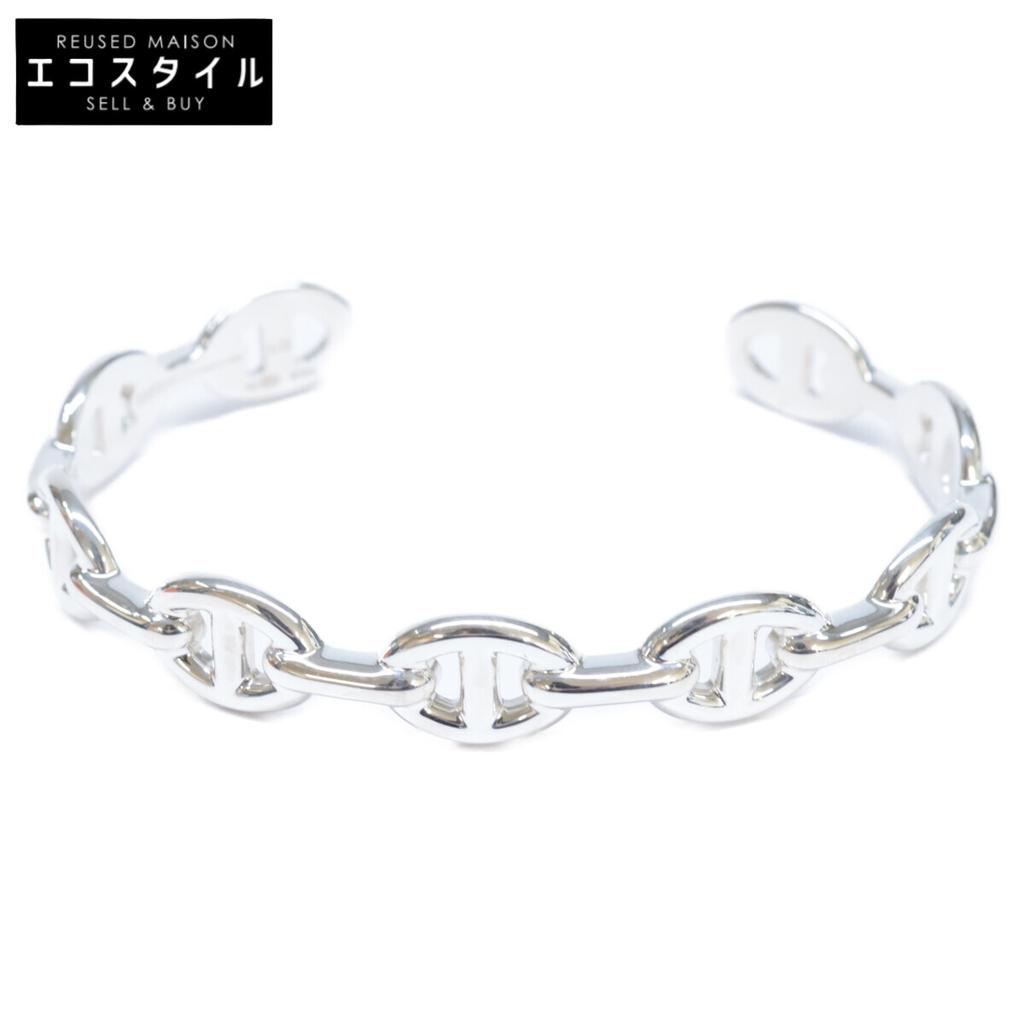 HERMES Finished 925 Chaine d'Ancre Enchaine MM Bangle LG SilverUsed