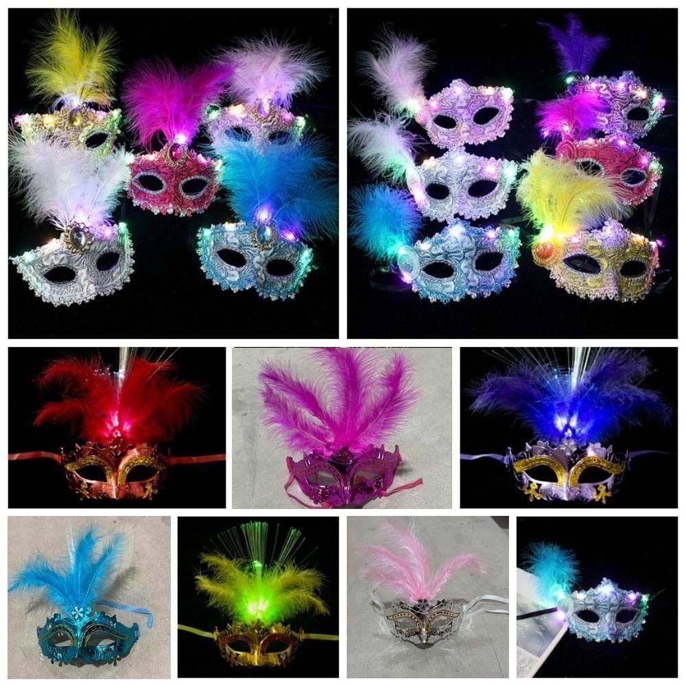 Königin Partyartikel LED Leuchtmaske Ausgeschnitten Make-up Feder Schmetterling Maske Aufleuchtend Kunststoff Venedig Maskenball Masken Damen