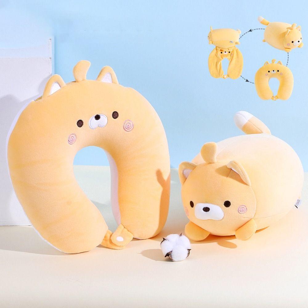 Deformable Cat U-shaped Pillow Skin-friendly Soft Travel Pillow 2 in 1 Foam Particle Neck Pillow Home Decoration