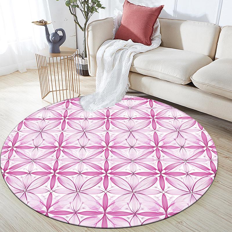 Runder Teppich mit rosa Muster, Teppich für Wohnzimmer, Schlafzimmer, Sofa, Spielzimmer Dekor, Rutschfeste Bodenmatte, Feiertagsgeschenke und Geburtstagsgeschenke.