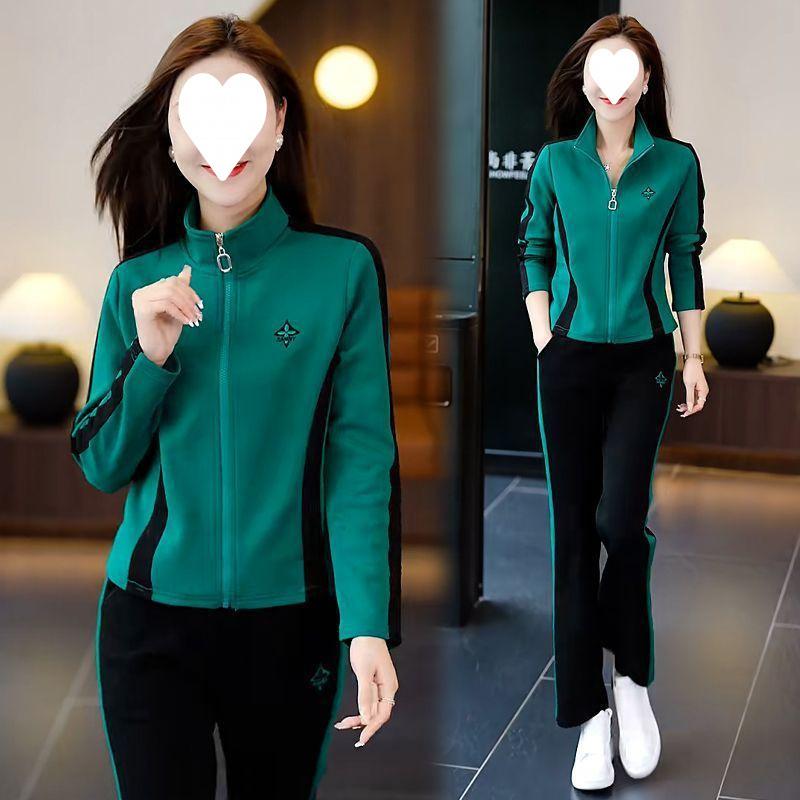 Fall-winter Outfit: A Complete Set of Korean-style Versatile Zipper Loose-fitting Hoodie Casual Wear Plus Wide-leg Pants Set.