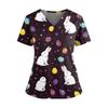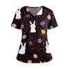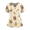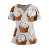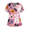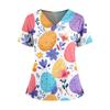 Damen Osterdruck V-Ausschnitt Doppeltasche Kurzarm Uniform Top mit geschlitztem Saum