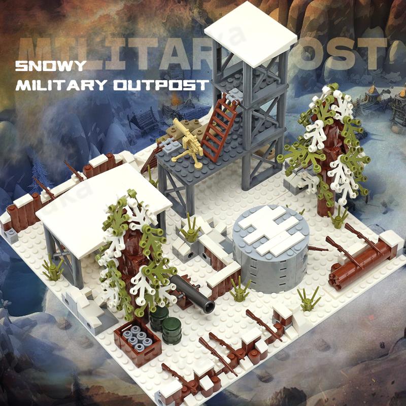 MOC Schneebedeckte Militärbasis Bausteine Militäraußenposten Blöcke Spielzeug für Jungen DIY Konstruktionsspielzeug Kompatibel mit Klassischen Steinen