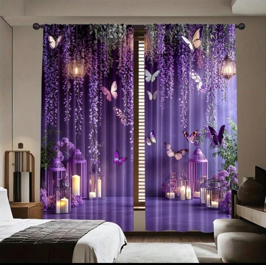 Lila Schmetterlingsprint Vorhänge Stangentaschen Vorhänge Schlafzimmer und Wohnzimmer Heimdekoration Raumdekoration