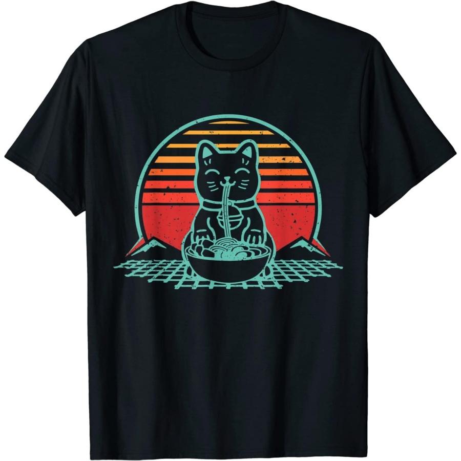 FLYEHI Anime Shirt Anime Lovers Retro Vintage Ramen Cat Kawaii T-Shirt