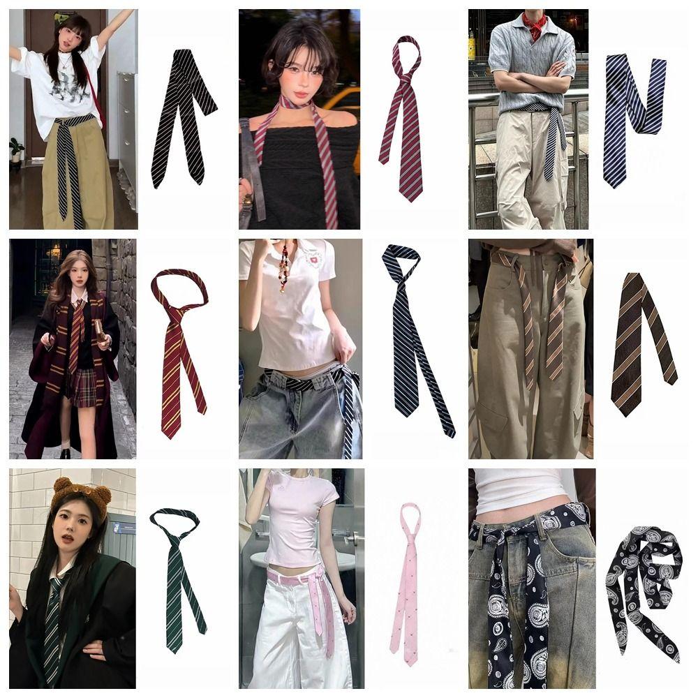 Polyester Krawatte Schal Lang Dünn Gestreifte Krawatte Trendiger Gestreifter Taillengürtel Damen Herren