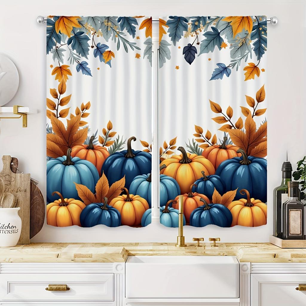 2pc Pumpkin and maple leaf print curtains polyester fabric machine washable suitable for bedroom and living room decoration