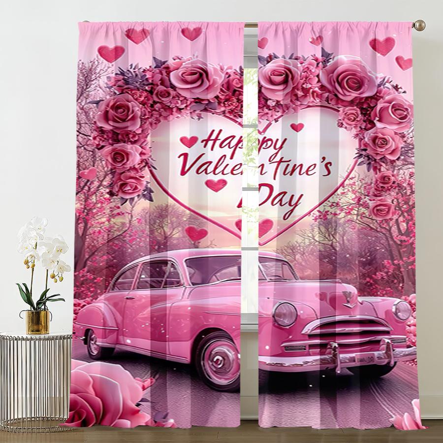 2 Stück puderfarben floral retro Auto Valentinstag Verdunkelungsvorhänge süßer Stil Schlafzimmer Wohnzimmer Stangentasche Dekoration