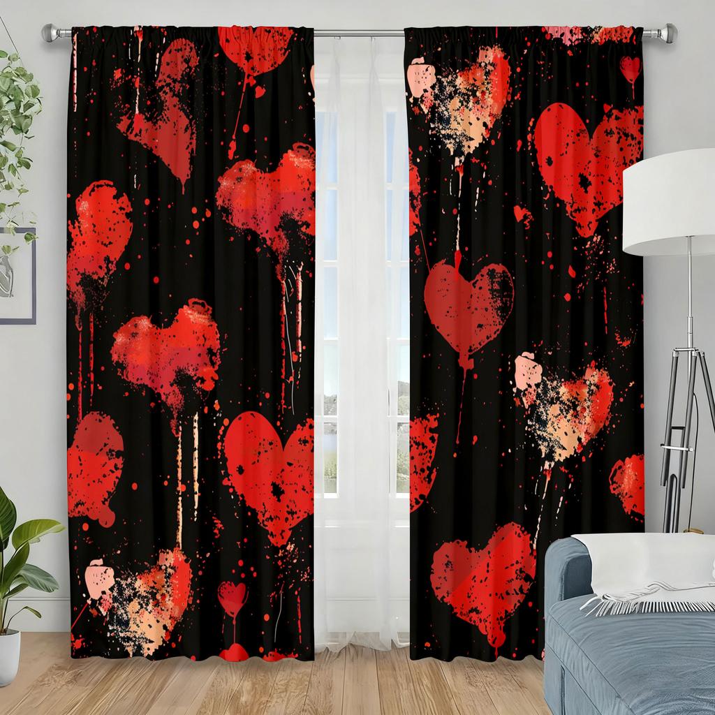 2 Stück Rot und schwarz gesprenkelte Tinte Liebesvorhänge Valentinstag-Thema Wohnzimmer Schlafzimmer Stangentasche Fensterdekoration