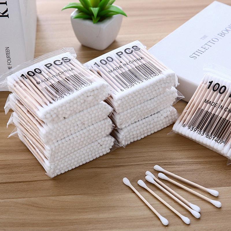 Pack of 100 Disposable Double-Headed Cotton Swabs for Ear Cleaning and Makeup Removal