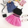 Neues Sommer-Denim-Westentop für Mädchen + Top + Grüner Rock 100% Rabatt + Gürtel Vier-teiliges Set