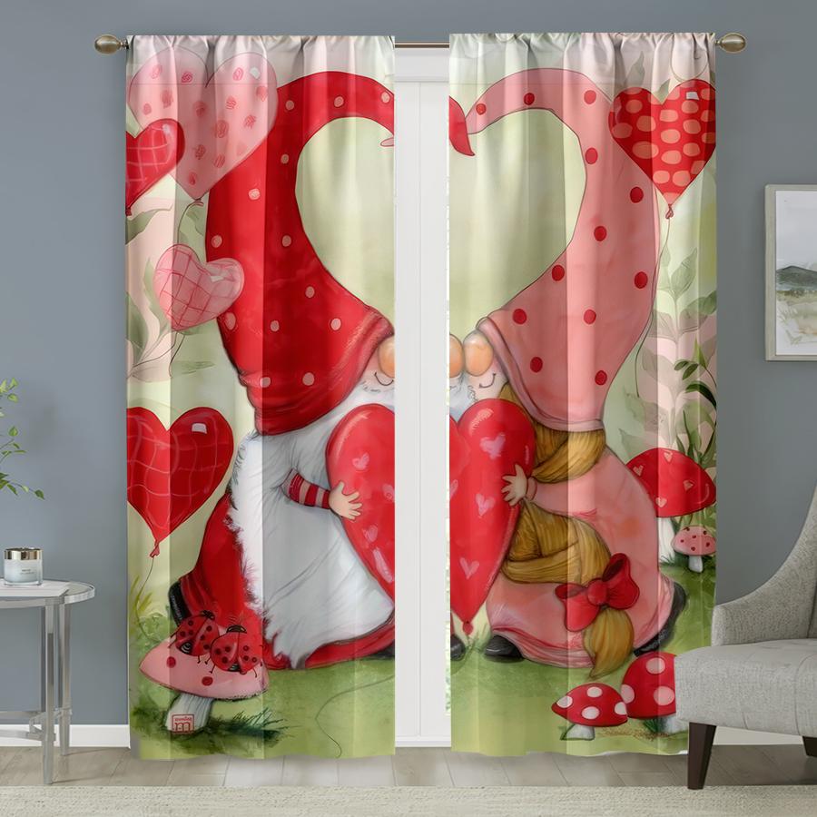 2pcs Love gnome curtains fairy tale sweet element style living room and bedroom decorative drawbar pocket style