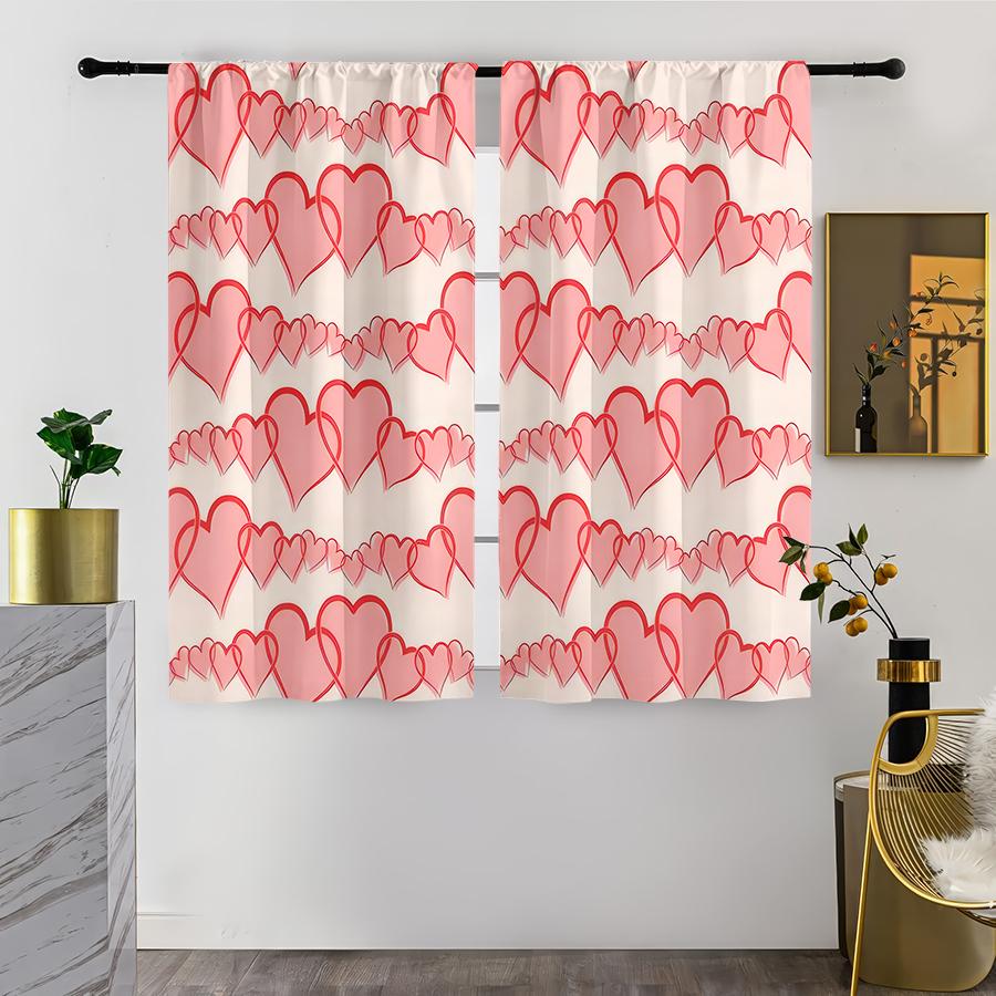2 Stück rosa handbemalte herzförmige Vorhänge süßer Stil Schlafzimmer und Wohnzimmer Dekorative Vorhänge mit Stangentaschen