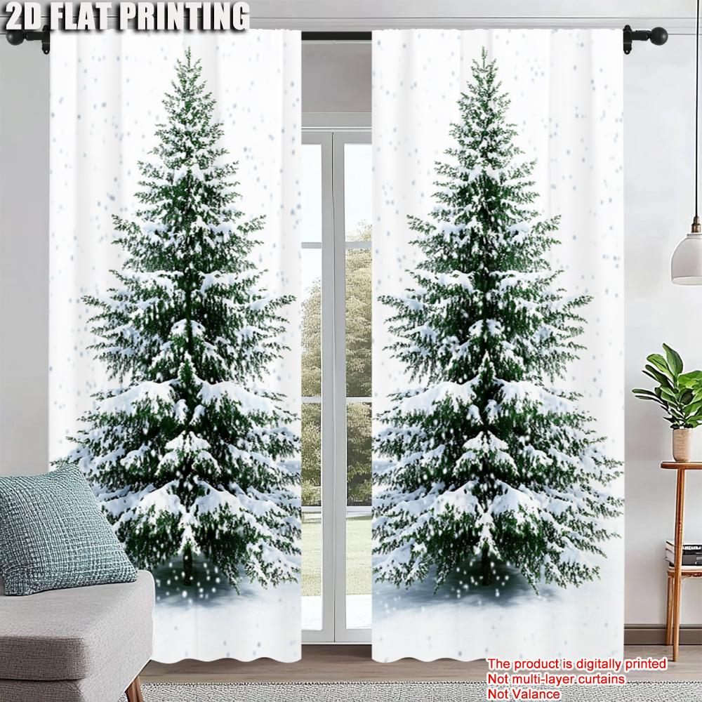 2Pcs Snowy Pine Tree Digital Print Curtains Polyester Drapes For Living Room Dining Room Study Office Rod Pocket Design For Easy