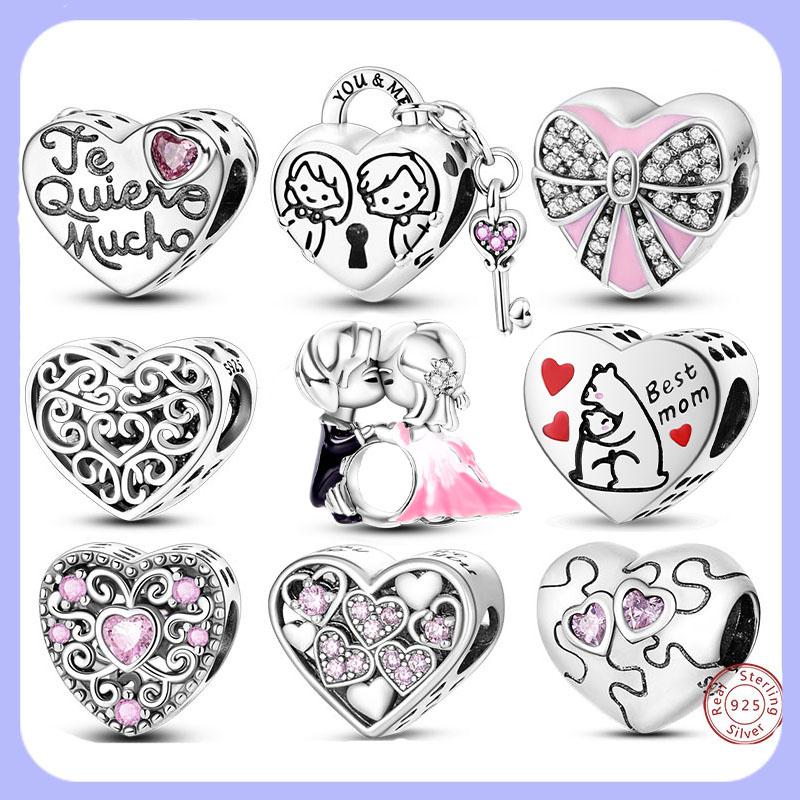 Copper Heart Charm Beads With Cz Stones Pendant For Bracelet Necklace Charm Beads Women Girl Jewelry Gifts