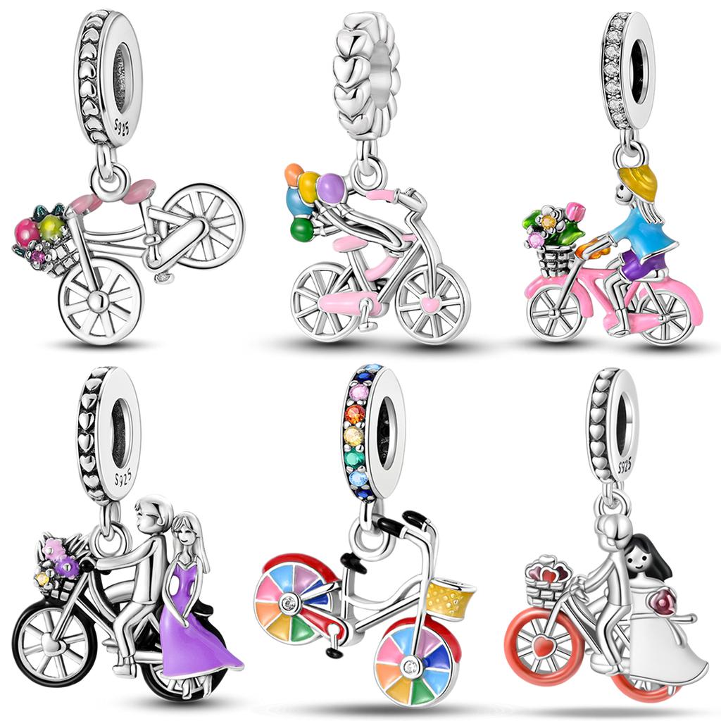 Romantic Bicycle Lover Charms Beads Copper Colorful Bike Pendants Fit Original Bangle Bracelet Diy Jewelry Gift