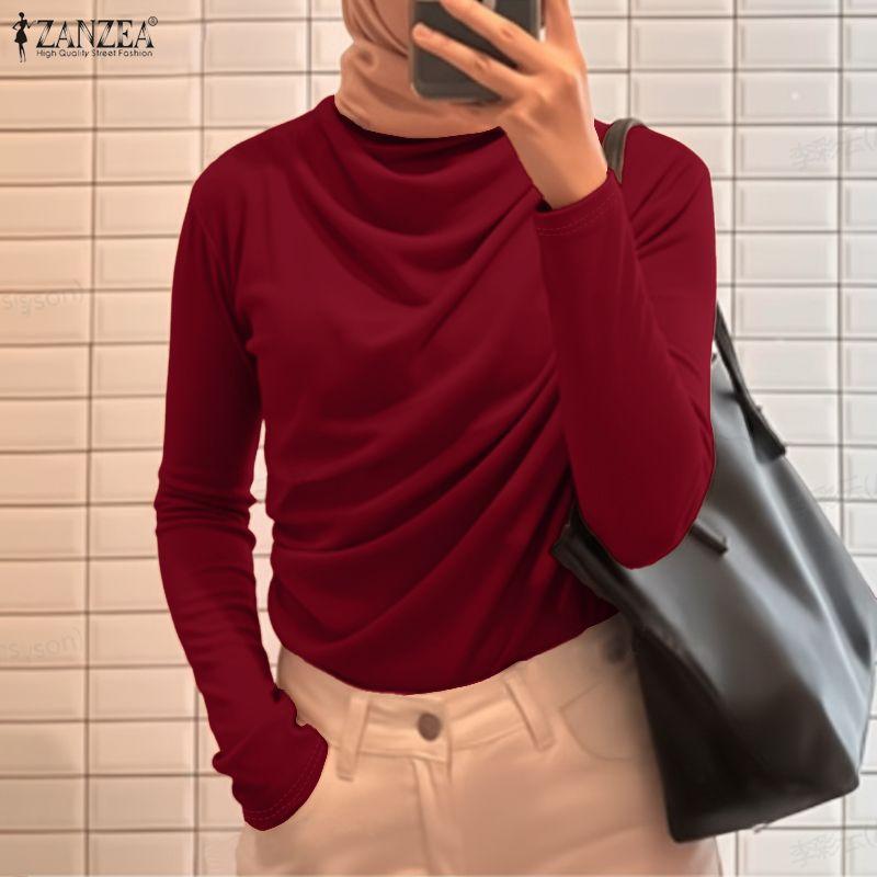 ZANZEA Women Casual Pile Collar Solid Color Long Sleeve Blouse
