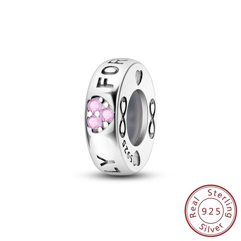 Charms Original Copper Pink Zircon Heart Permanent Positioning Beads Fit Bracelet Women Jewelry Diy Gift Accessory