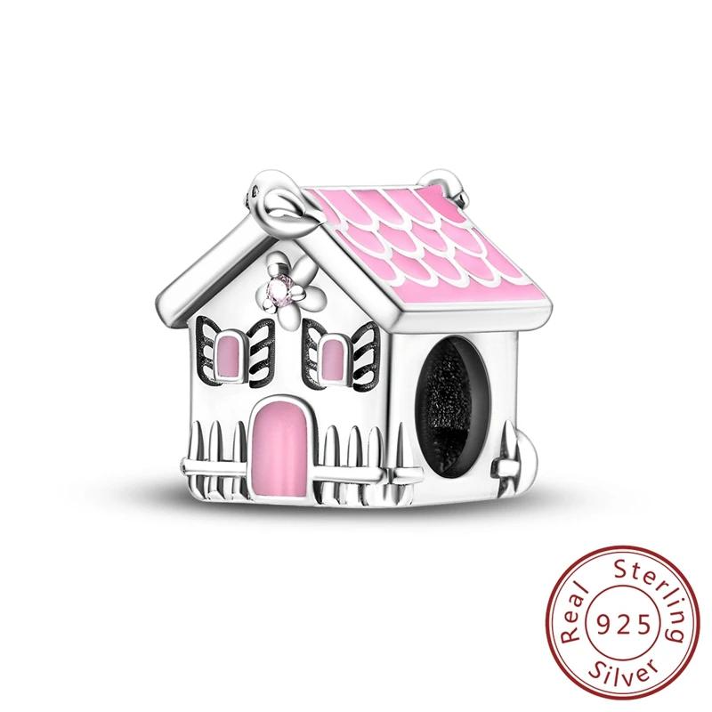Original Charms Copper Cute Pink Sweet House Flower Beads Fit Platabracelets For Women Jewelry Making Gifts