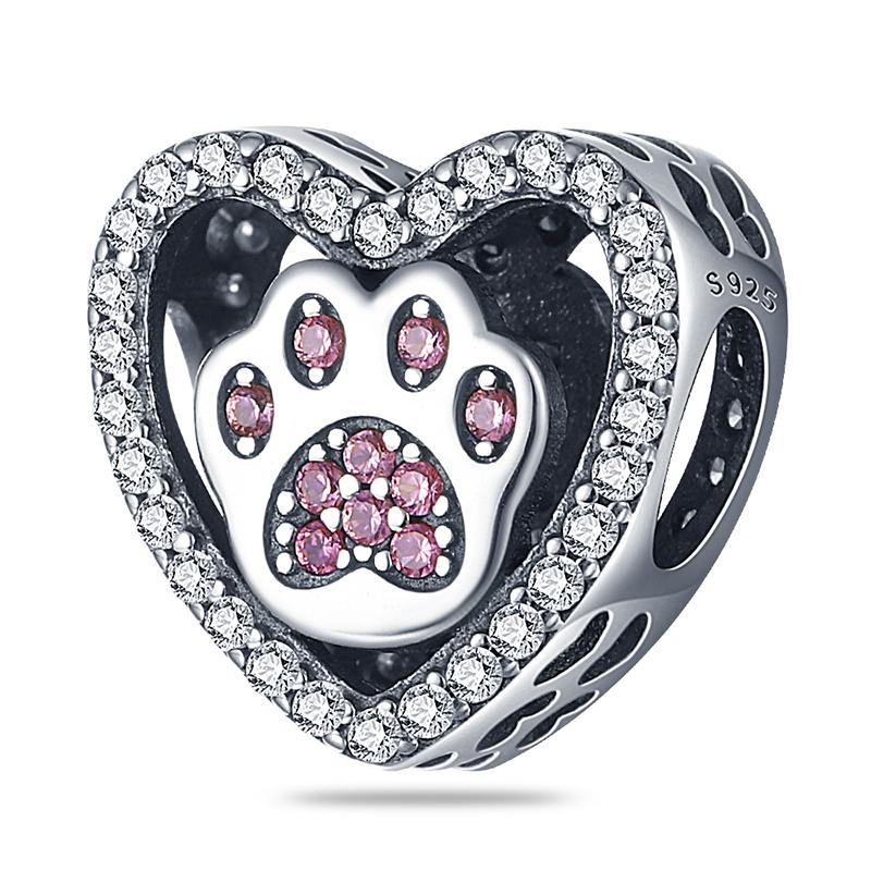 Charms Original Copper Heart Dog Paws Beads Fit Bracelet Diy Fine Gift Women Delicate Jewelry Accessory