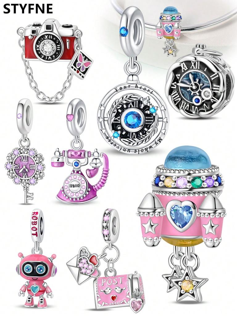 Charms Silber Kupferfarben Rosa Rakete Roboter Telefon Perlen Charm Anhänger Für Original Armband Für Frauen DIY Schmuck Liebesgeschenk