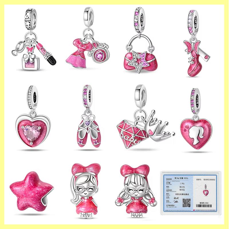Passend Pfanne Originalarmbänder DIY Schmuck Geschenke Kupfer Mode Rosa Prinzessinnenrock Tasche Lippenstift Anhänger Perlen