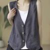 Damen Leinenweste Sommer Lässig Ärmellos Cardigan Jacke Locker Dünn Lässig Knopfweste Damen Streetwear Weste Mantel