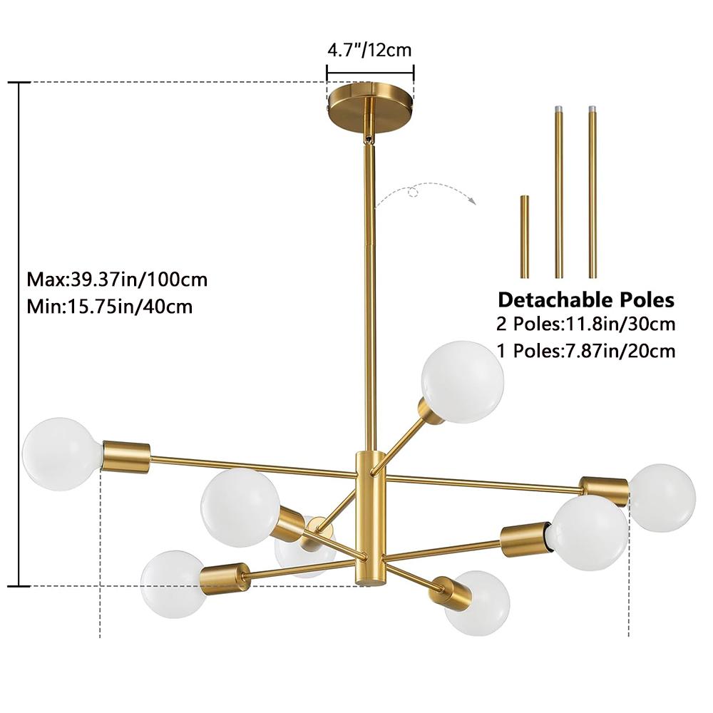 2. Höhenverstellbar - Die Mid-Century-Kronleuchter-Leuchte hat 3 Verlängerungsstangen, darunter 2 × 11,8" und 1 × 7,9" Stangen. Sie können die Aufhängehöhe Ihren Bedürfnissen entsprechend anpassen.