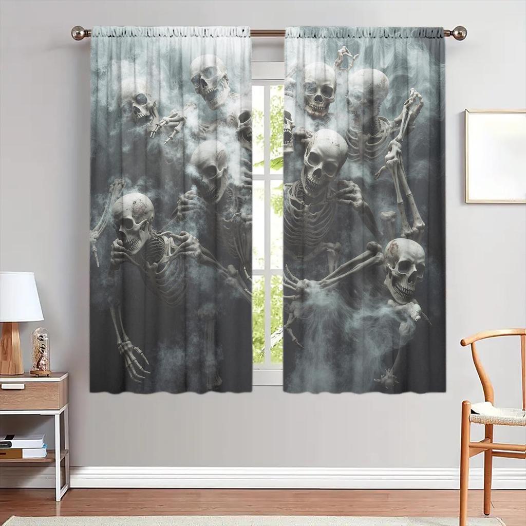 2-teilige Schreckliche Skelette im Rauch Aufdruck Vorhänge Sicht- und Sonnenschutz Geeignet für die Dekoration verschiedener Räume