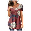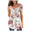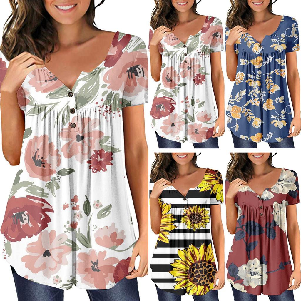 Damen-Pullover, lässig, modisch, Übergröße, bedruckt, kurzärmelig, Knopfleiste, V-Ausschnitt