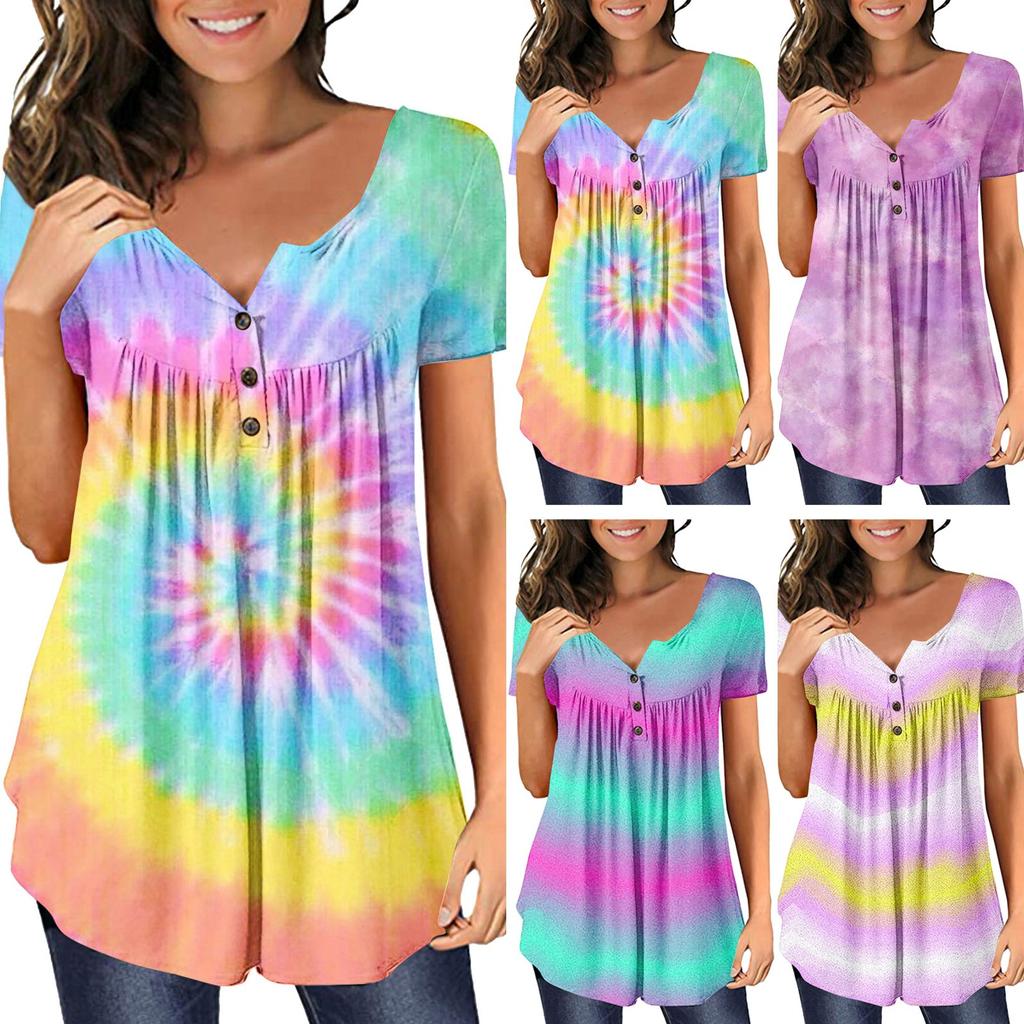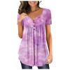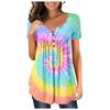 Damen-Pullover, lässig, modisch, Übergröße, bedruckt, kurzärmelig, Knopfleiste, V-Ausschnitt