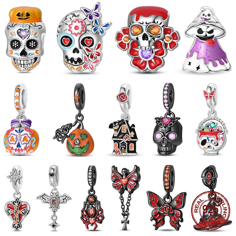 New 100% Copper Original Halloween Beaded Bat Black Skull Charms Fit Bracelet Diy Jewelry Making Women'S Gifts