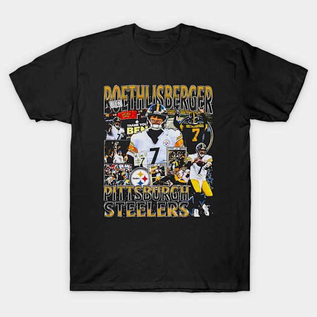 Herren Schwarzes T-Shirt mit Aufdruck Ben Roethlisberger Vintage Bootleg No-Cut Transferpapier Druck Baumwoll-T-Shirt