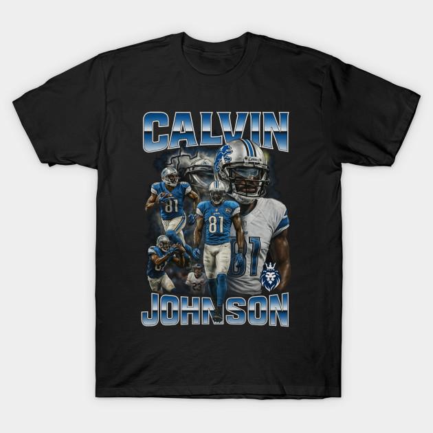 Herren Schwarzes Print-T-Shirt Calvin Johnson Vintage Bootleg Grafikkunst – Detroit Lions Wr 81 Kein-Schnitt-Transferpapier-Druck Baumwoll-T-Shirt