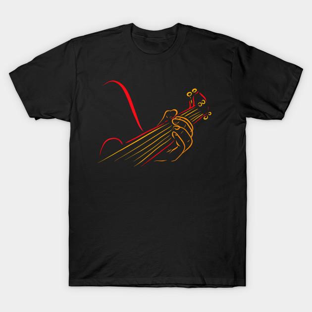 Men Black Print T-shirt Minimalist Guitar Artwork – Retro Line Art Music Illustration No-Cut Transfer Paper Print Cotton Tshirt