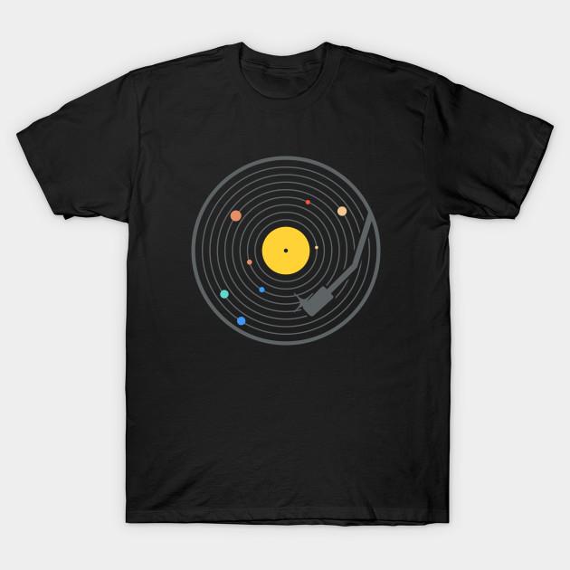 Men Black Print T-shirt This Vinyl Record Solar System (Space Music) No-Cut Transfer Paper Print Cotton Tshirt