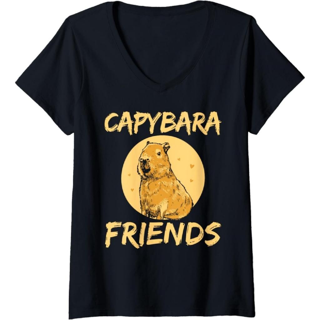 Womens Capybara Friends Capybaras Rodent Lover Animal V-Neck T-Shirt