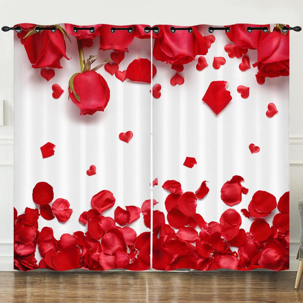 Valentine'S Day Girl Heart Pink Love Rose Digital Printing Curtain Blackout Punching