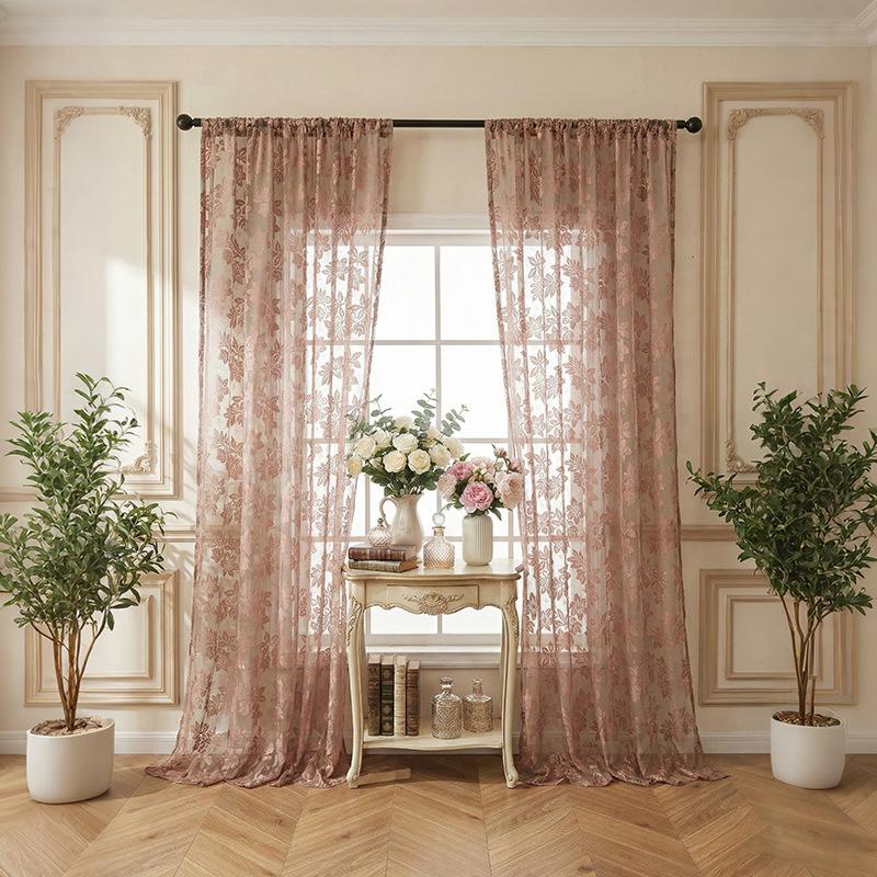American Flower Lace Translucent Curtain Window Screen Finished Pastoral Small Fresh Bedroom Living Room Balcony