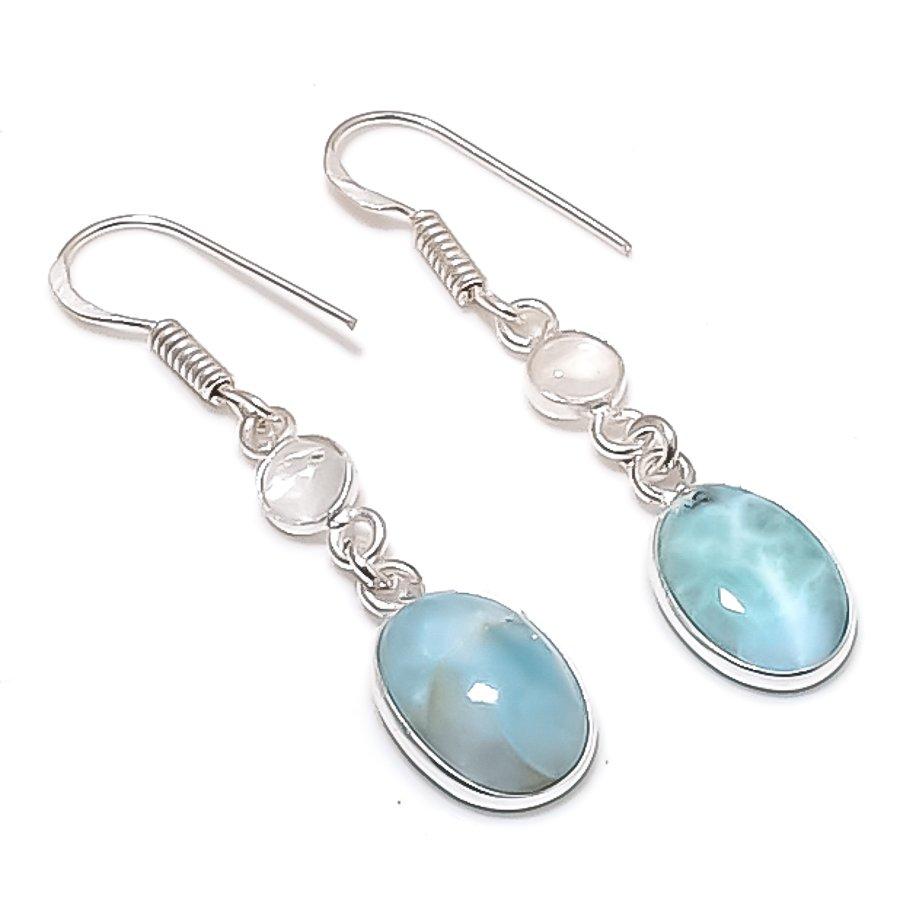 Natürlicher Larmar, Weißer Topas 925er Sterlingsilber Schmuck Ohrring 1,77" AEE-11250