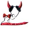Teufelschwanz Kostüm mit Teufel Stirnband Fliege Halloween Teufel Cosplay Zubehör für Damen Teenager Maskenball Cosplay Party