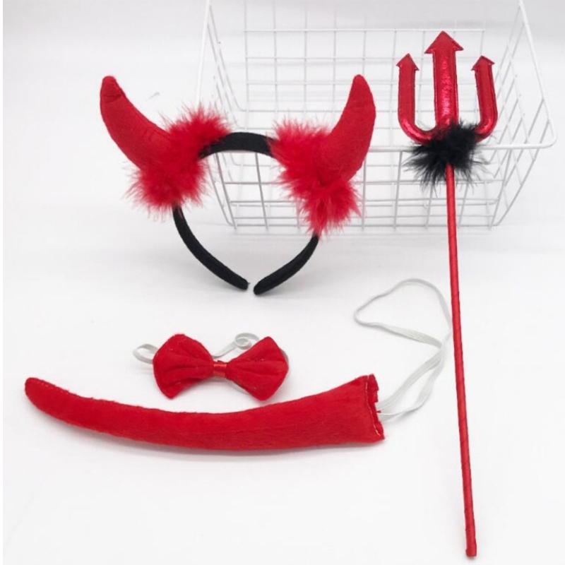 Halloween Devil Costume Kits Including Horn Headband Bowtie Tail Demons Dress Up Outfit Halloween Cosplays Party Props