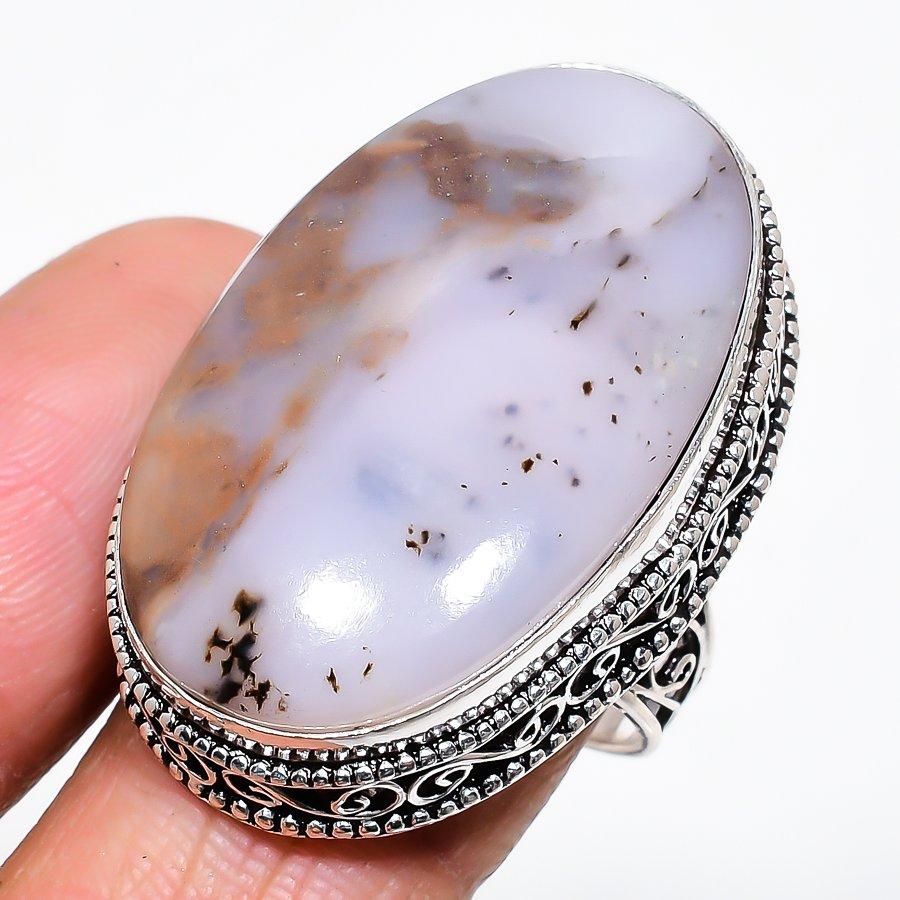 Natural Russian Dendritic Gemstone 925 Sterling Silver Jewelry Ring Size 9 AR-16497