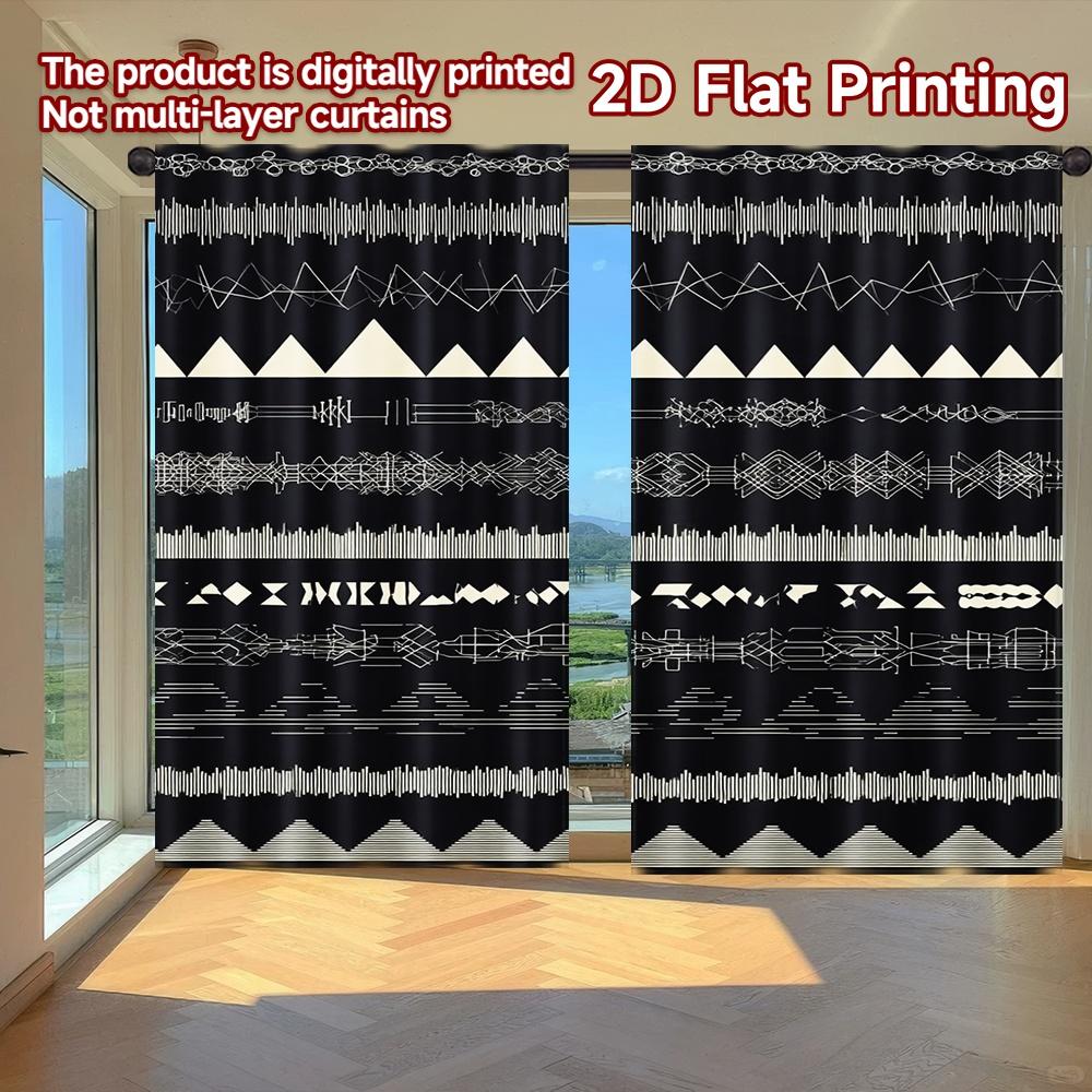 2D-Flachdruck, 2-teilige Vorhänge (Ohne Stange) Geometrisches Schwarz-Weiß-Design (2) Frauentag Festival Schicker Druck Vorhänge