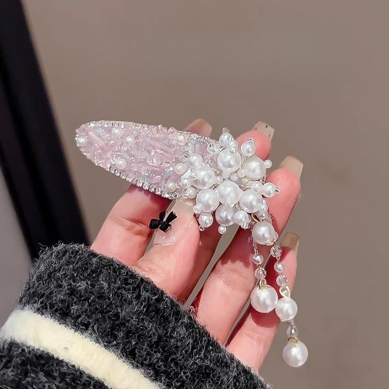 Light luxury French crystal hairpin women's new temperament pearl tassel bb clip bangs broken hair clip national style hairpin