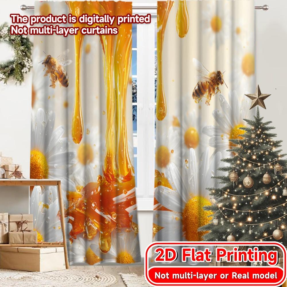 2D Flachdruck 2 Stück Honey Harmony Zeitgenössisch Schick Gardinen Drucke Lichtfilternde Vorhänge Raumdekoration Perfekt für Wohnzimmer