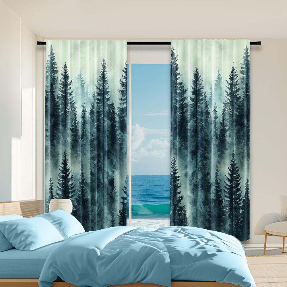 2 Stück vielseitige transparente Polyestervorhänge für die Heimdekoration Misty Forest Peel für den Einsatz in Schlafzimmern und Wohnzimmern