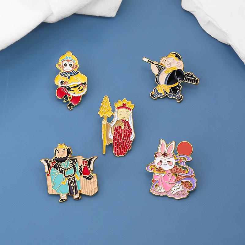 Reise nach Westen Cartoon-Figur Sun Wukong Tang Seng Schweinchen Sand Mönch Umrandung Chinesischer Stil Kreative Persönlichkeit Anstecknadel Abzeichen