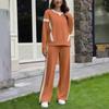 YYFS Damenmode Lässig Frühling Herbst Farbblock-Print Langarm O-Ausschnitt Hosen Anzüge