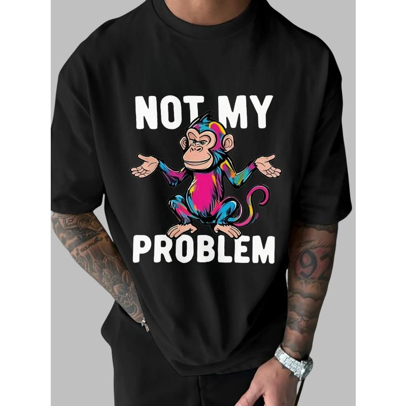 European sizes Men's Funny "Not My Problem Monkey" Graphic T-Shirt, Short Sleeve Shirt for Streetwear & Everyday Outfits